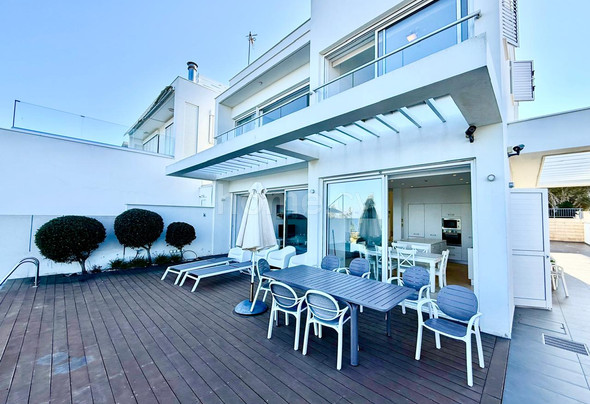 A stunning five-bedroom seafront residence, completed in 2012 and meticulously updated, offering a private and luxurious Mediterranean lifestyle within an exclusive complex of just 20 residences. Its prime position directly on the beach protection zone ensures breathtaking, uninterrupted views of the sea.
