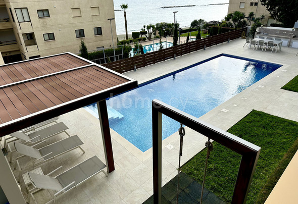 Experience the epitome of coastal elegance with this stunning ground-floor apartment situated in the prestigious Agios Tychon Tourist Area. This 133 m residence offers a rare combination of direct seafront access, sophisticated design, and expansive outdoor living spaces.
