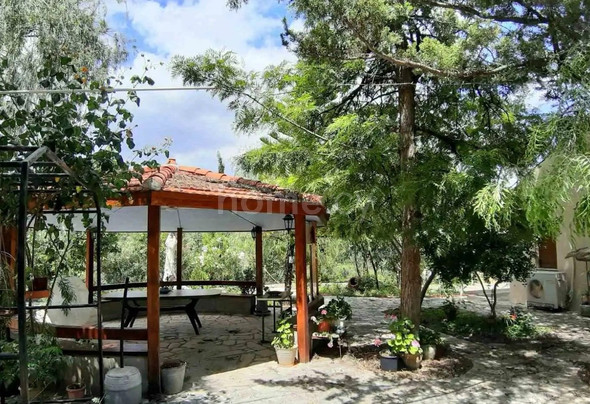 The house consists of an open-plan living, kitchen and dining area, bedroom and toilet/shower on the ground floor, 2 bedrooms and toilet/shower on the first floor. Auxiliary spaces with kitchen, toilet and storage rooms, barbecue area and traditional ovens, gazebo and garden.