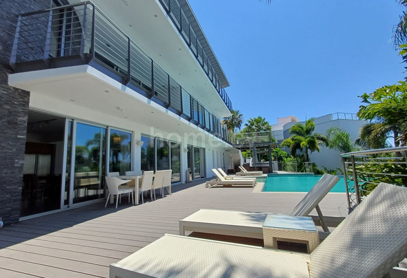 Additionally, the exterior of the house offers a large veranda with sunbeds, a unique waterfall swimming pool with a beautiful garden surrounding the pool with tall palm trees, a very nice covered veranda with outdoor furniture and a nice BBQ area. The house is gated and fenced and there is double covered parking space and uncovered parking area as well.